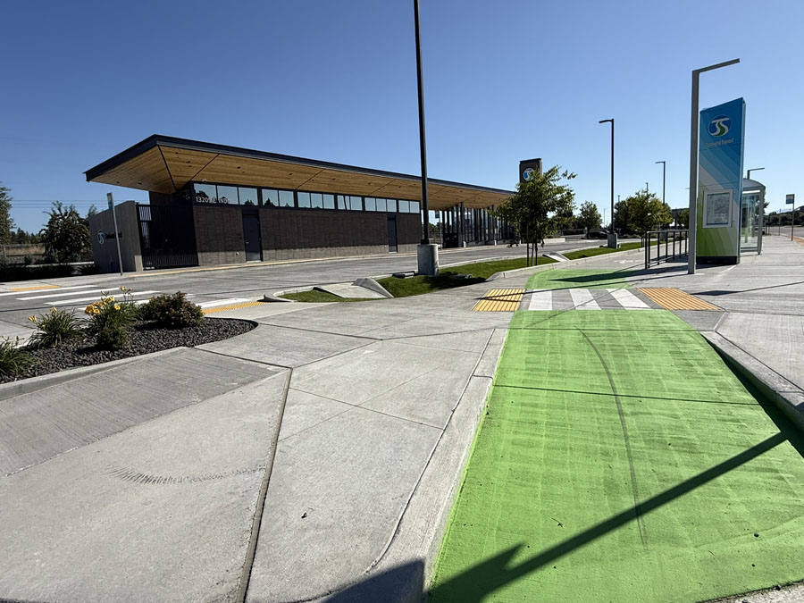 The facility was designed to meet current transit needs while preparing for the future, offering expanded park-and-ride parking, enhanced security with cameras on the platform and throughout parking areas, and infrastructure ready for future electric vehicle (EV) charging stations.